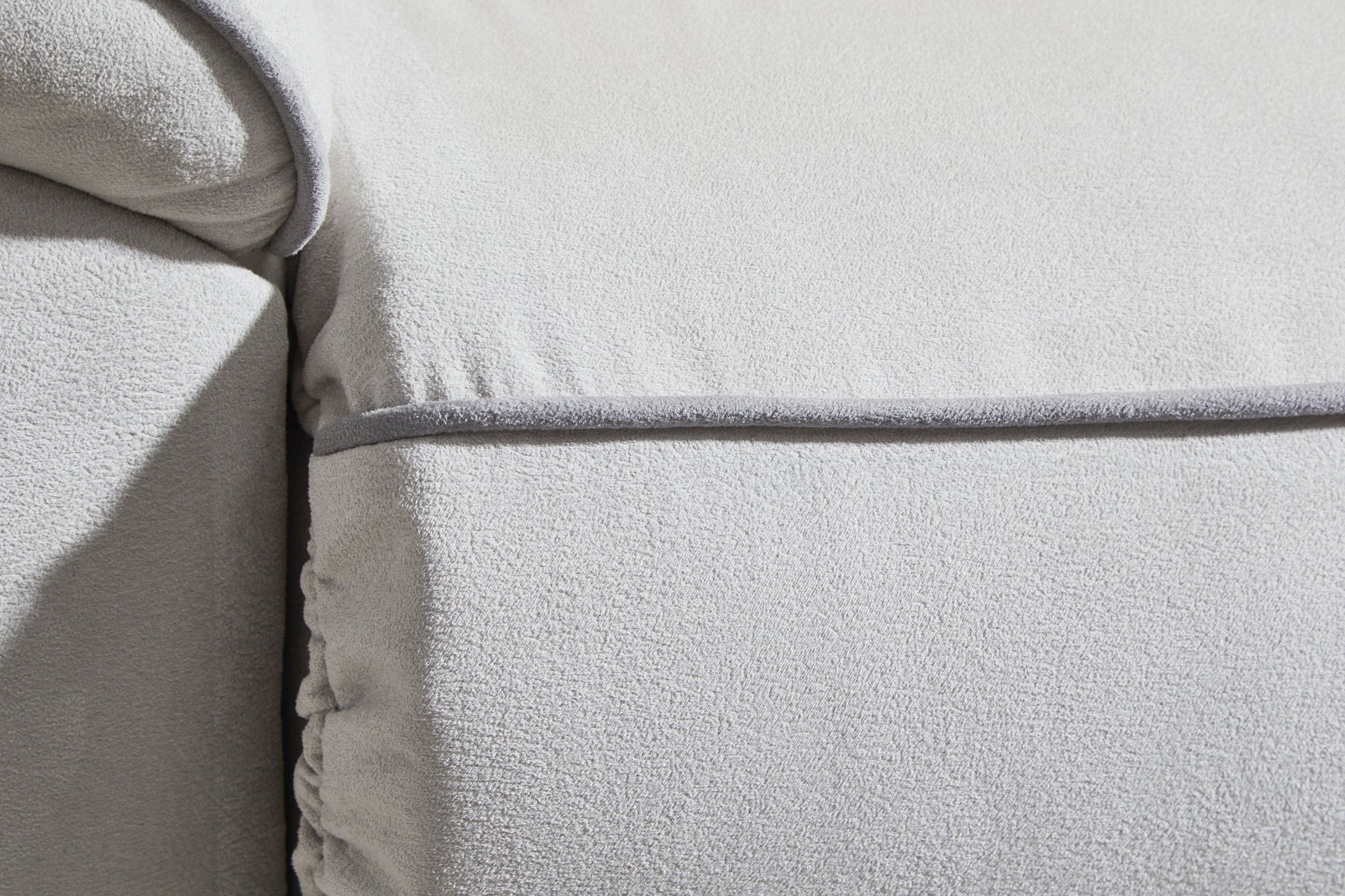 Smart, clean and ultra modern, this power reclining sectional is utterly in vogue. You'll love its indulgent cushions and contemporary bustle back styling. The sumptuous fabric, accentuated with contrasting welting, easily blends with your decor. And with reclining at the press of a button, this modular sectional proves chic design and superb comfort go hand in hand.